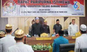 Panaragan–lampungmesiaonline.com Wakil Bupati Tulang Bawang Barat (Tubaba), Nadirsyah, membacakan sambutan Gubernur Lampung, Rahmat Mirzani Djausal, dalam Sidang Paripurna Istimewa DPRD Tubaba memperingati...
