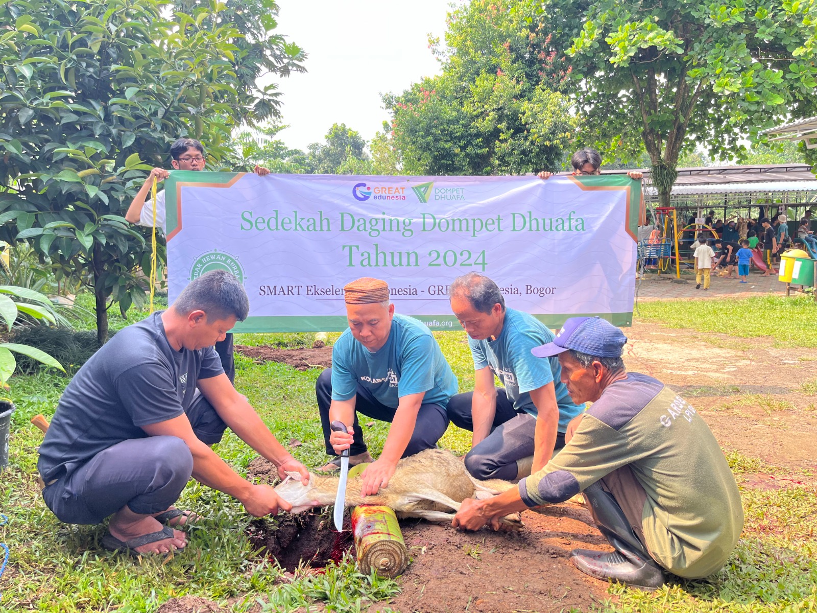 Pada Iduladha tahun ini, GREAT Edunesia sukses menghelat GREAT Kurban pada senin, 17 Juni 2024. GREAT Edunesia dipercaya untuk menyalurkan 63 hewan kurban berupa 1 sapi limosin dan 28 domba/kambing (doka) dari alumni dan donatur GREAT Edunesia, serta 34 hewan kurban dari program Tebar Hewan Kurban (THK) Dompet Dhuafa. Hewan kurban tersebut disalurkan di dua tempat, yaitu SMART Ekselensia Indonesia, Bogor dan Pesantren Tahfizh Green Lido, Sukabumi.
