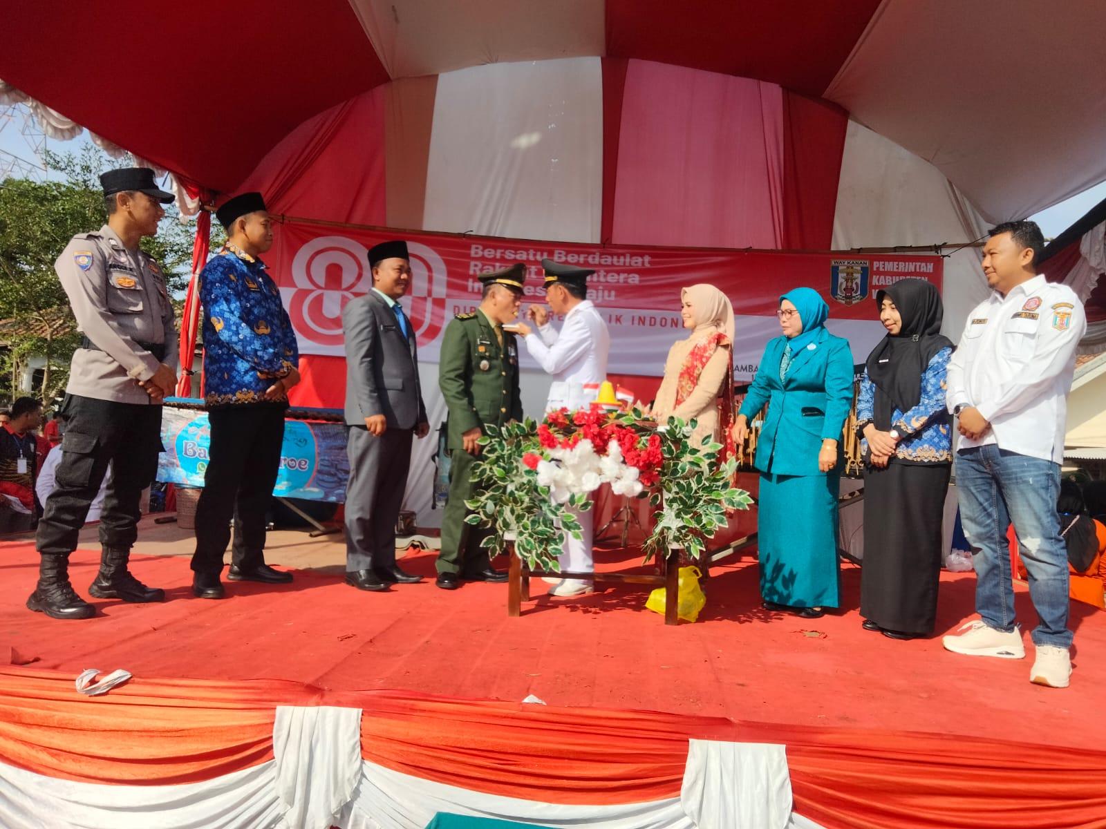 Upacara memperingati HUT RI dilaksanakan dengan penuh semangat dan khidmat serta berjalan dengan lancar dipimpin Camat Blambangan Umpu, Akhmad Syapari. S.Ag, M. S I. dengan Komandan Upacara.Serma Syukri Karim . Sedangkan perwira upacara Sertu Resdiato. dari Koramil Blambangan umpu..