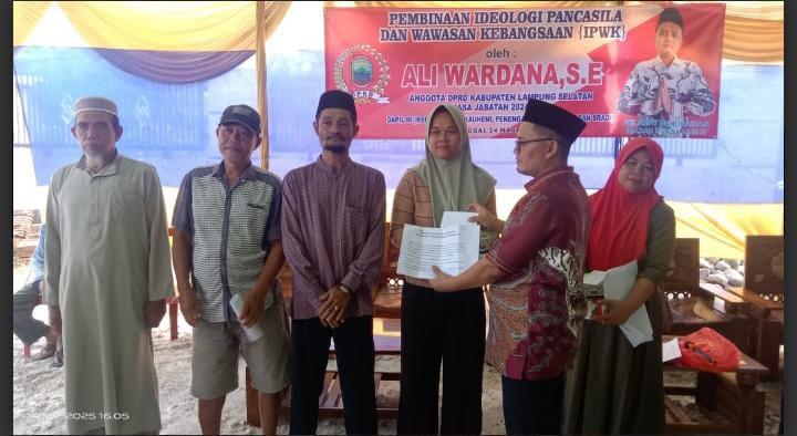 lampungselatan,www.lampungmediaonline.com  Anggota Dewan Perwakilan Rakyat Daerah (DPRD) Kabupaten Lampung Selatan (Lamsel) menggelar sosialisasi pembinaan Idiologi Pancasila dan Wawasan Kebangsaan (IPWK) di Desa Klaten, Kecamatan Penengahan, pada Jum’at (14/3/2025).