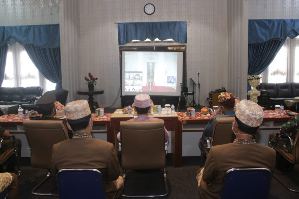 Bupati Lampura Ikuti Upacara Peringatan Harlah Pancasila TA. 2021 Secara Virtual
