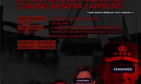 Bandar Lampung, www.lampungmediaonline.com – Menjelang pelaksanaan aksi pada Senin, 1 September 2025, Himpunan Mahasiswa Islam (HMI) Cabang Bandar Lampung menegaskan bahwa aksi...