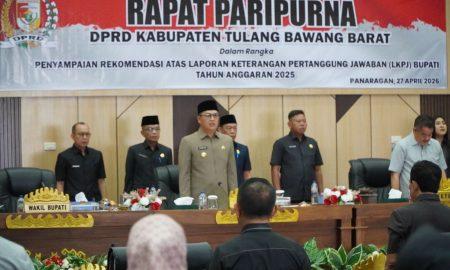 Panaragan–lampungmediaonline.com Bupati Tulang Bawang Barat (Tubaba), Ir. Novriwan Jaya, S.P., menghadiri Rapat Paripurna DPRD dalam agenda penyampaian rekomendasi atas Laporan Keterangan Pertanggungjawaban...