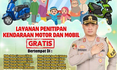 Lampung Utara,www.Lampungmediaonline.com-Menjelang mudik Lebaran Idul Fitri 2025, Polres Lampung Utara membuka layanan penitipan kendaraan gratis bagi masyarakat yang ingin meninggalkan kendaraan mereka...