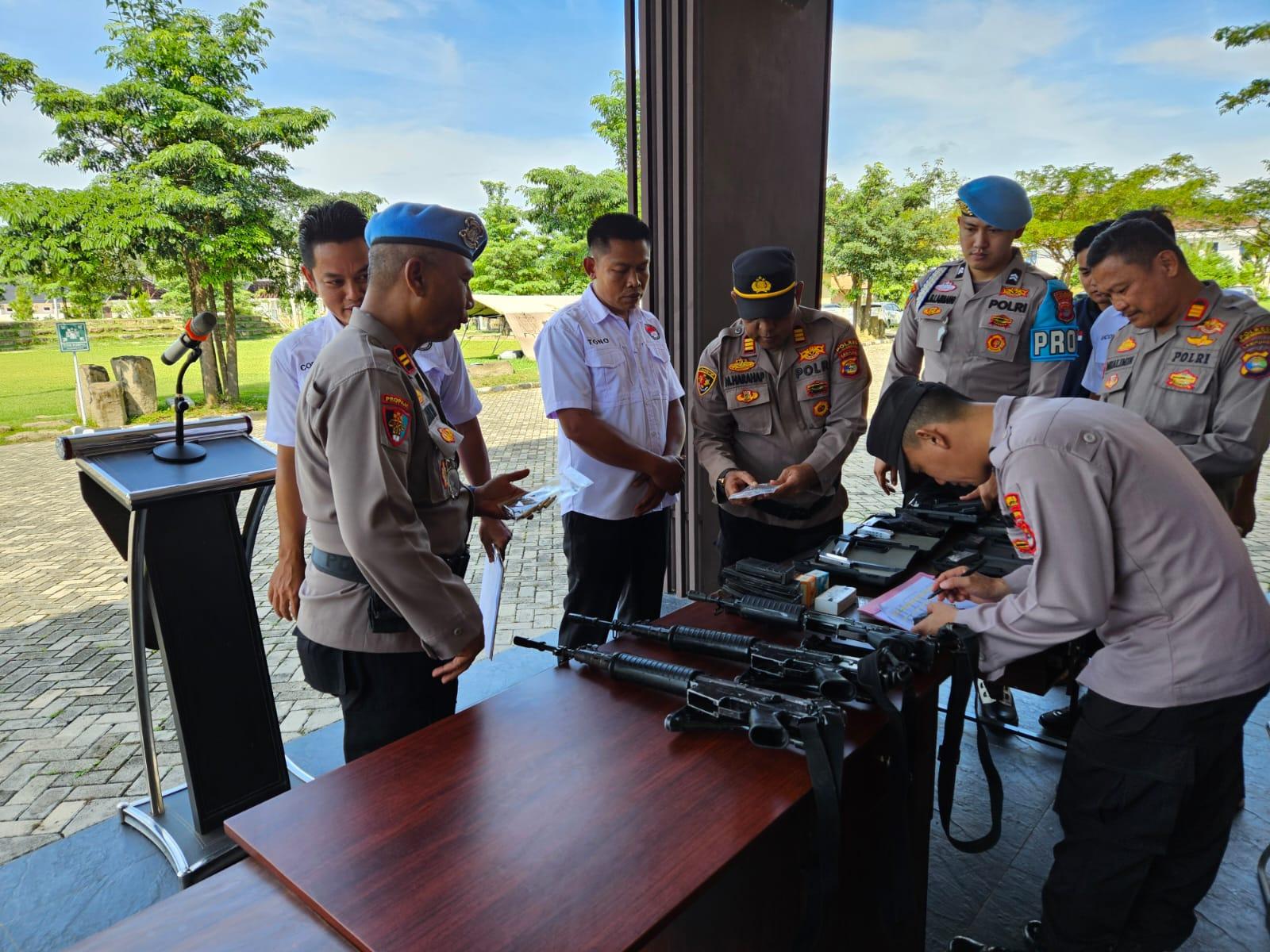 Sipropam Polres Tubaba Polda Lampung laksanakan pengecekan dan pemeriksaan terhadap senjata api (senpi) dinas Inventaris dan Gudang Logistik Polres Tubaba di halaman Apel Mapolres Tubaba.