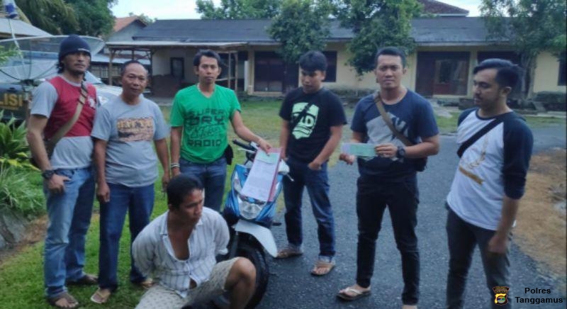 Dari pelaku bernama Jakri (37), pengangguran warga Pekon Kunyayan Kecamatan Wonosobo, Tanggamus itu turut diamankan sepeda motor Honda Beat warna biru putih tanpa plat, 1 lembar Kwitansi bertuliskan seratus ribu tertanggal 09-02-2020 tertanda tangan Jack dan 1 buku kwitansi kosong.