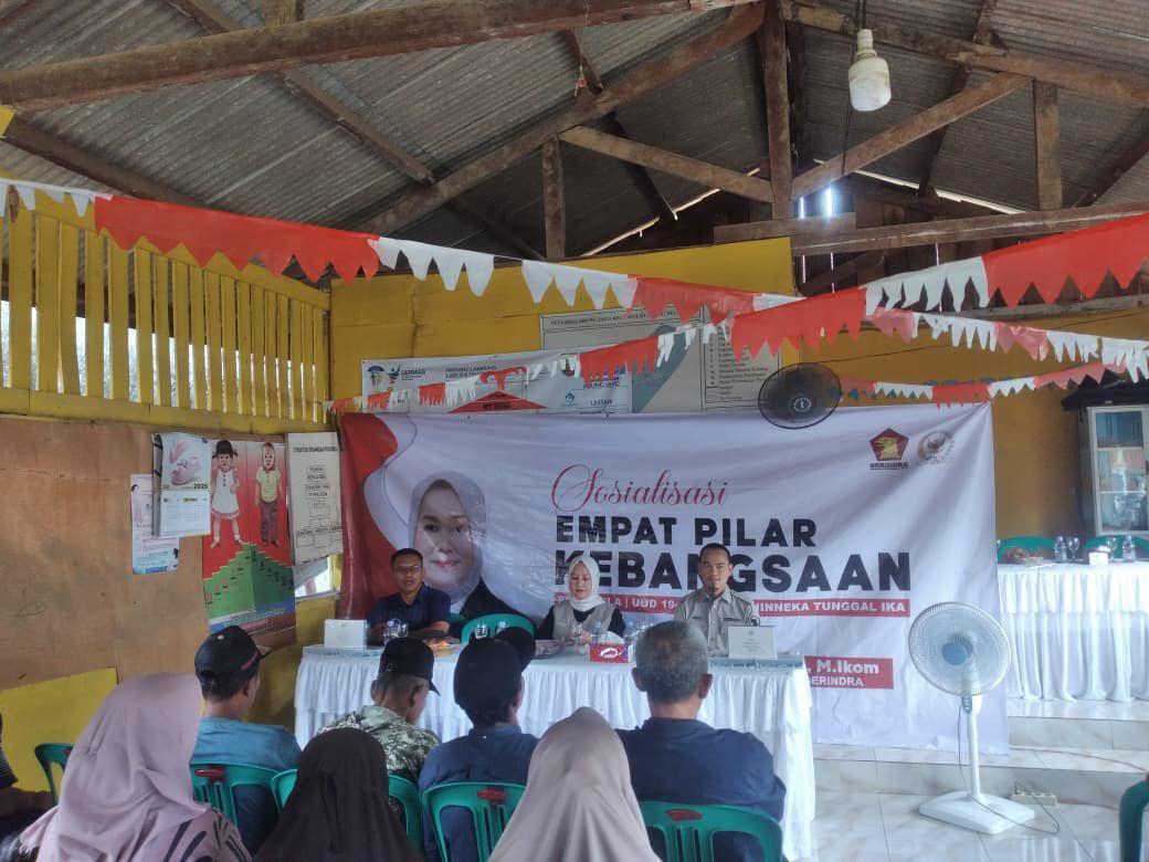 Abung Timur, Lampung Utara, www.lampungmediaonline.com – Ir. Dwita Ria Gunadi kembali melaksanakan kegiatan Sosialisasi 4 Pilar Kebangsaan pada Senin siang, 15 Desember 2025, yang bertempat di Kecamatan Abung Timur, Kabupaten Lampung Utara. Kegiatan ini dihadiri oleh tokoh adat, tokoh masyarakat, serta tokoh agama setempat.