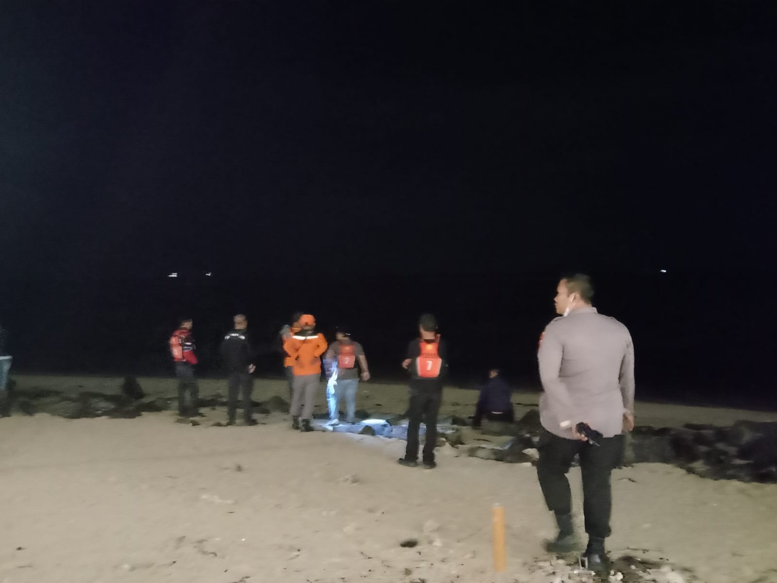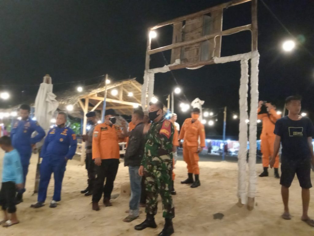 Pencarian sempat dihentikan lantaran kondisi cuaca berpotensi membahayakan petugas Basarnas , di bantu dari relawan rescuer dan nelayan yang mencari korban.