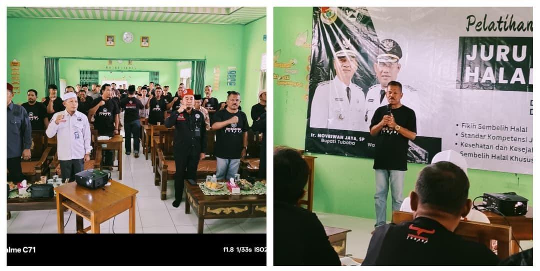 Bekerja sama dengan DPD Juleha (Juru Sembelih Halal) Tubaba, Disnakeswan menggelar Sosialisasi dan Pelatihan Penyembelihan Hewan yang Aman, Sehat, Utuh, dan Halal (ASUH) di Tiyuh (Desa) Tunas Jaya, Kecamatan Gunung Agung, Sabtu (08/11/2025).