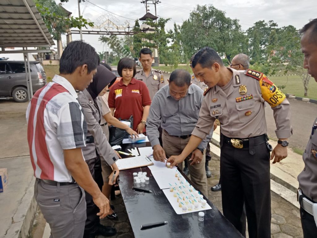 Dari hasil pemeriksaan urine dari mulai Kapolres, Wakapolres, Kabag, Kasat, Kapolsek jajaran, Kasie, Kanit dan Perwira Staf Polres dengan menggunakan alat Tes Kit Narkoba semuanya Negatif (-) mengandung Methamphetamine.