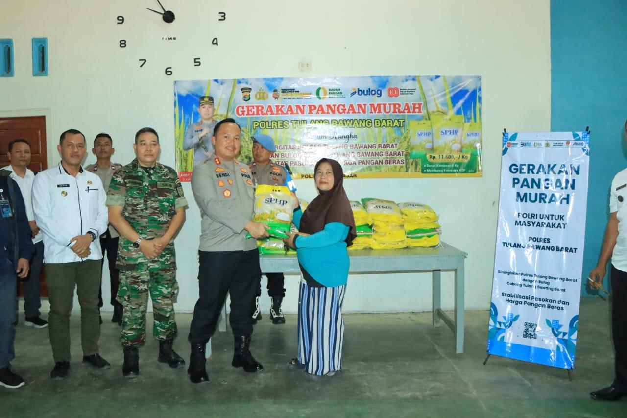 Polres Tubaba Polda Lampung menggelar Kick Off Launching Gerakan Pangan Murah (GPM) Polri untuk masyarakat di Balai Tiyuh Makarti Kec. Tumjajar Kab. Tulang Bawang Barat, Kegiatan ini dilaksanakan secara serentak di seluruh Jajaran Polres Polda Lampung dan dipimpin langsung oleh Kapolda Lampung Irjen. Pol. Helmy Santika, S.H., S.I.K., M.Si., melalui sarana Zoom Meeting. Rabu (24/09/2025)