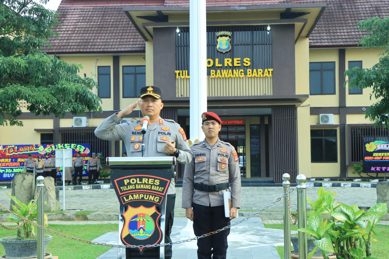 Kapolres Tulang Bawang Barat, Polda Lampung AKBP Sendi Antoni, S.I.K., M.I.K memimpin langsung upacara serah terima jabatan (Sertijab) Kasat Lantas Polres Tubaba di Lapangan Upacara Mapolres Tubaba, Kamis (22/01/2026) Pagi.