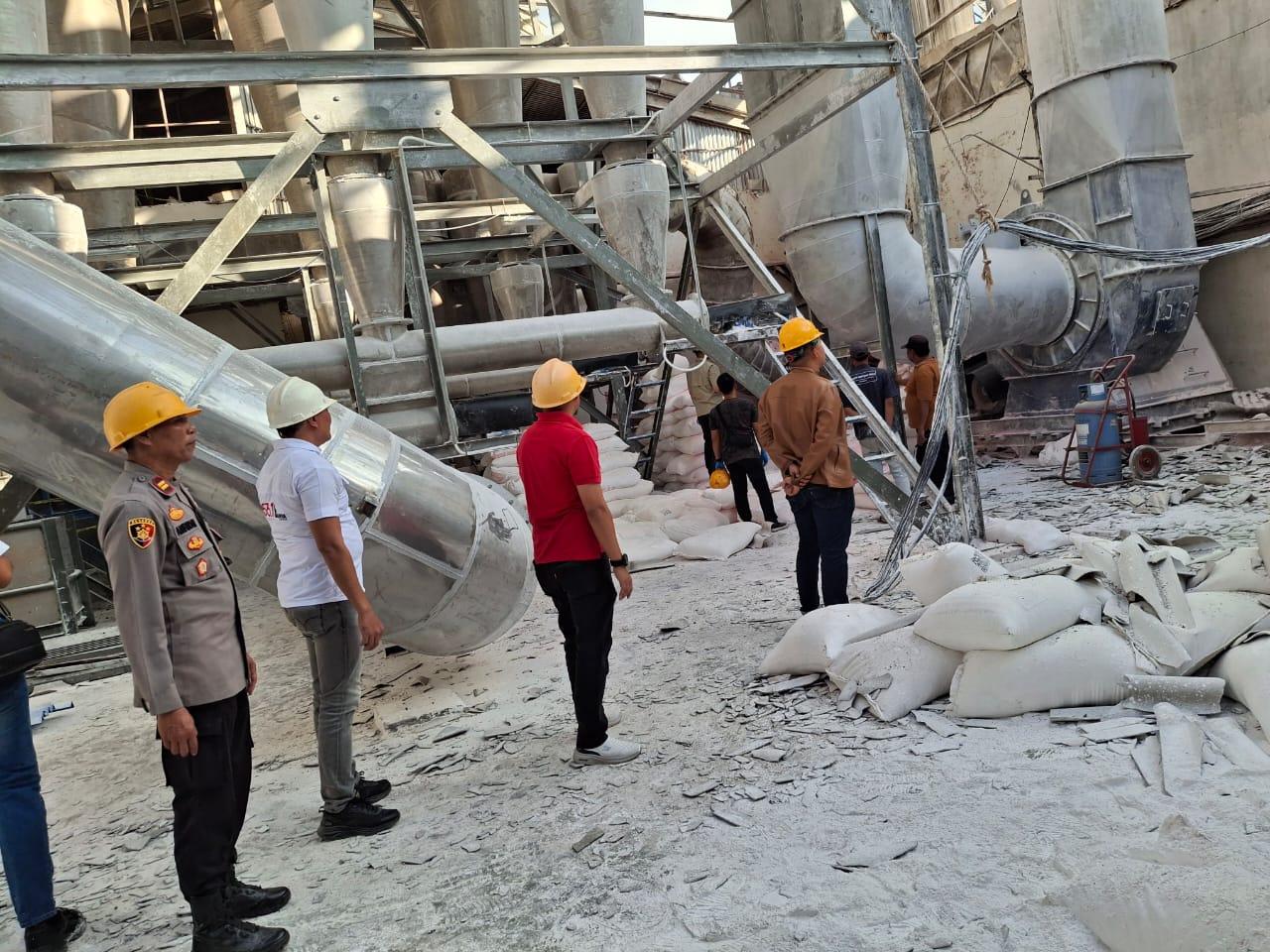 Kapolres Tulang Bawang Barat, Polda Lampung AKBP Sendi Antoni, S.I.K., M.I.K, didampingi Kasat Reskrim Iptu H.Tosira, S.H, M.H beserta Kapolsek Gunung Agung Iptu Amiruddin, S.H Tinjau ke lokasi kejadian ledakan mesin oven Meledak Pabrik Sagu PT. Mentari Prima Jaya Abadi Tiyuh Suka Jaya Kec. Gunung Agung Kab. Tubaba, Kamis (18/09/2025) Sore