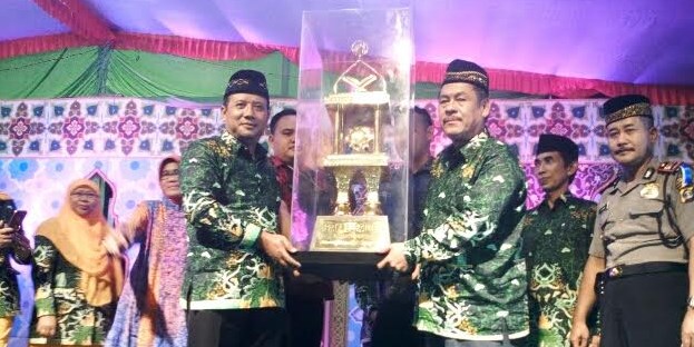 Selain acara penutupan Musabaqoh Tilawatil Qur’an,asisten (1) bidang pemerintahan dan kesra,agus subagyo.s.sos menyerahkan piala bergilir kepada kecamatan tulang bawang tengah sebagai juara umum peraih piala terbanyak tingkat kecamatan dalam acara Musabaqoh Tilawatil Qur’an.