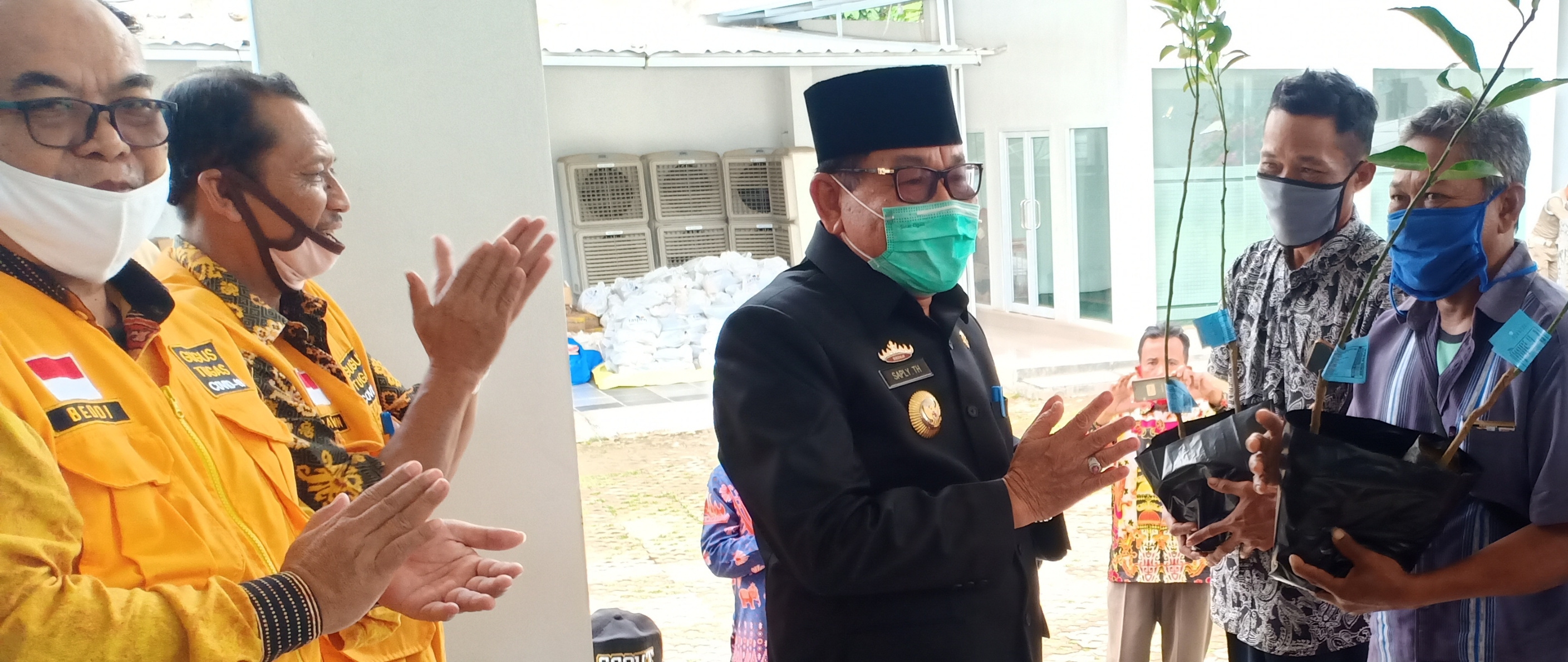 MESUJI – www.lampungmedia.com, Bantuan bibit yang secara langsung diberikan oleh Bupati mesuji, berupa bibit jeruk dan bibit jahe, bibit jahe merah sendiri sebanyak satu ton yang dibagikan kepada lima kelompok tani yang ada dikabupaten mesuji, seperti kecamatan mesuji dan kecamatan mesuji timur, yang bertempat dirumah dinas bupati, kamis (16/7), pembagian diberikan secara simbolis.