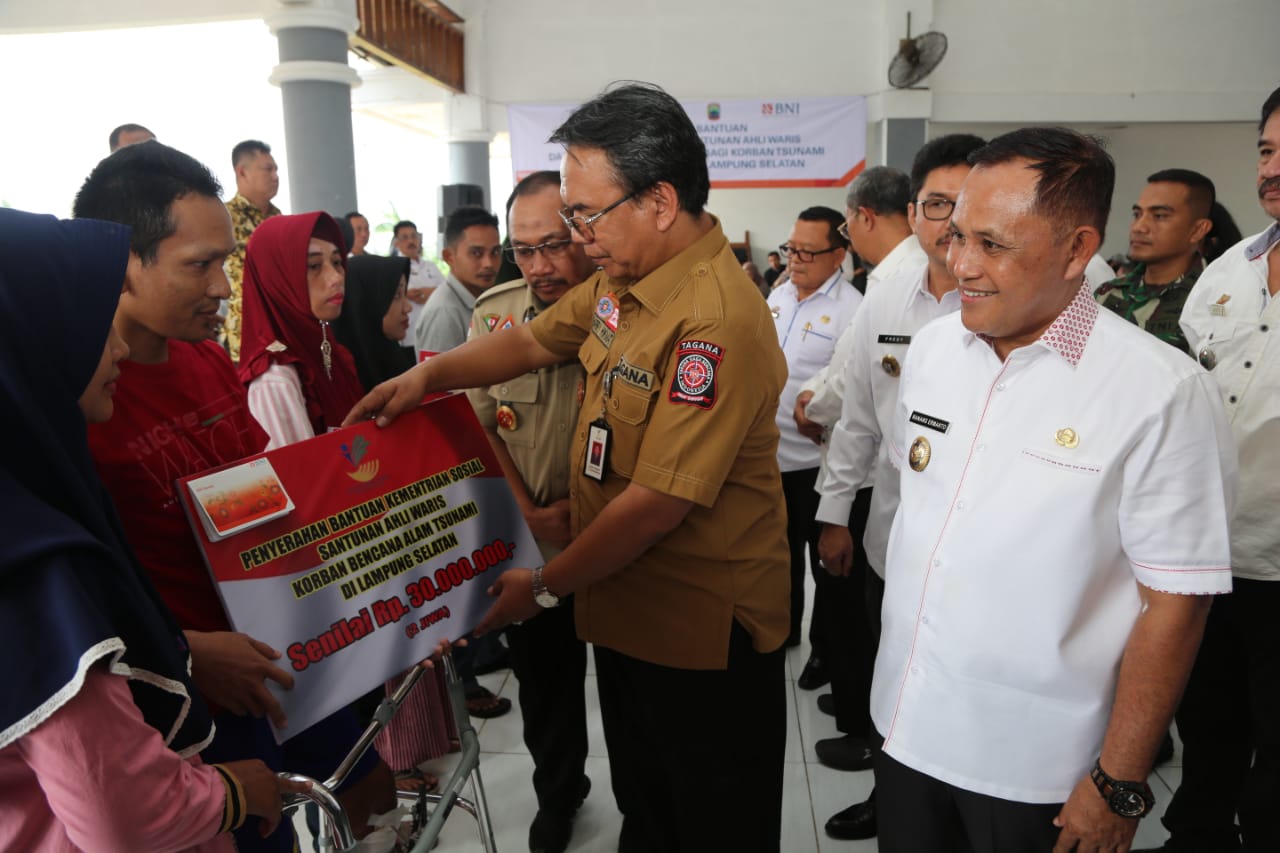 Lampung selatan www.lampungmediaonline.com – Kementerian Sosial Republik Indonesia (Kemensos RI), memberikan bantuan berupa santunan dan jaminan hidup untuk korban bencana alam tsunami di Lampung Selatan, yang terjadi pada tanggal 22 Desember tahun 2018 lalu.