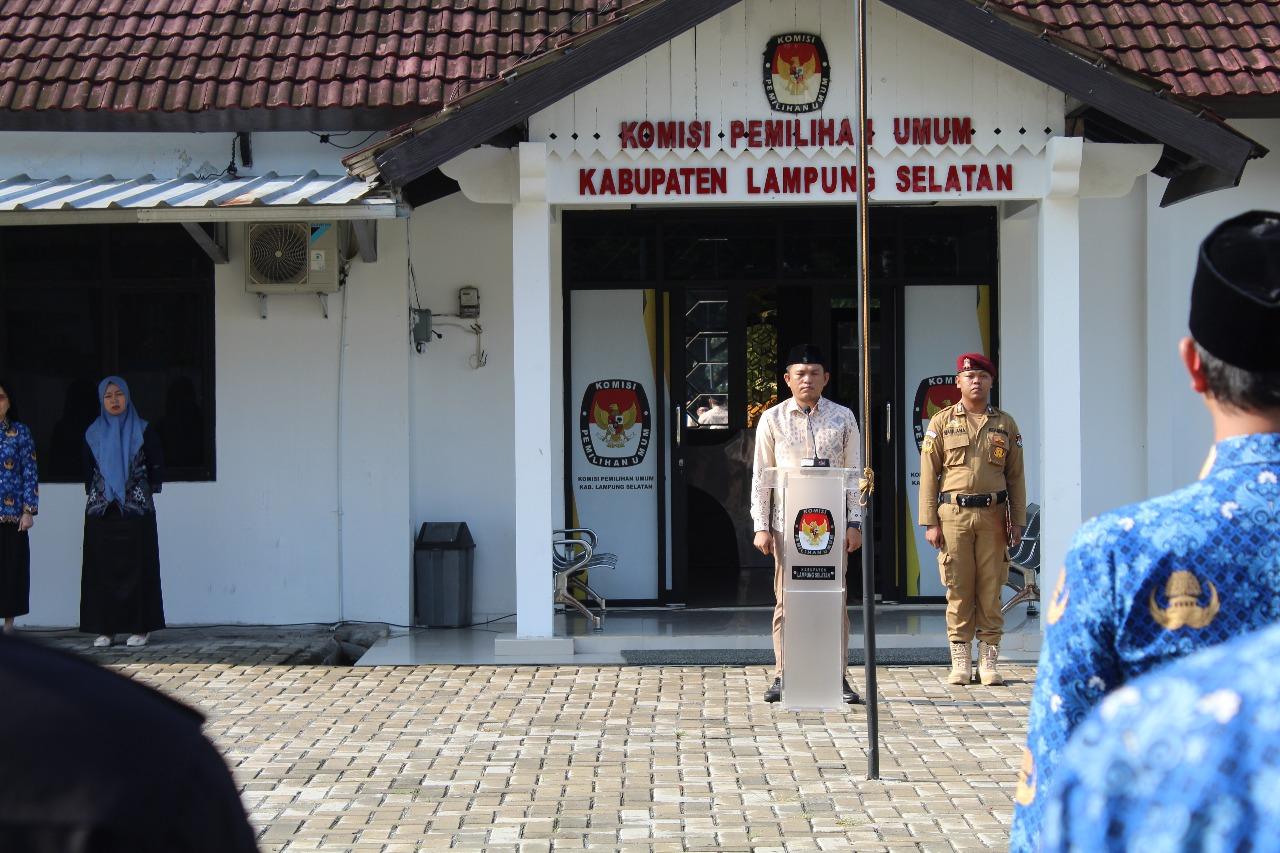 Lampung Selatan,www.lampungmediaonline.com – Ketua KPU Kabupaten Lampung Selatan, Rama Guntara, memimpin upacara peringatan Hari Kesaktian Pancasila di halaman Kantor KPU Kabupaten Lampung Selatan pada Senin, 1 Oktober 2025.