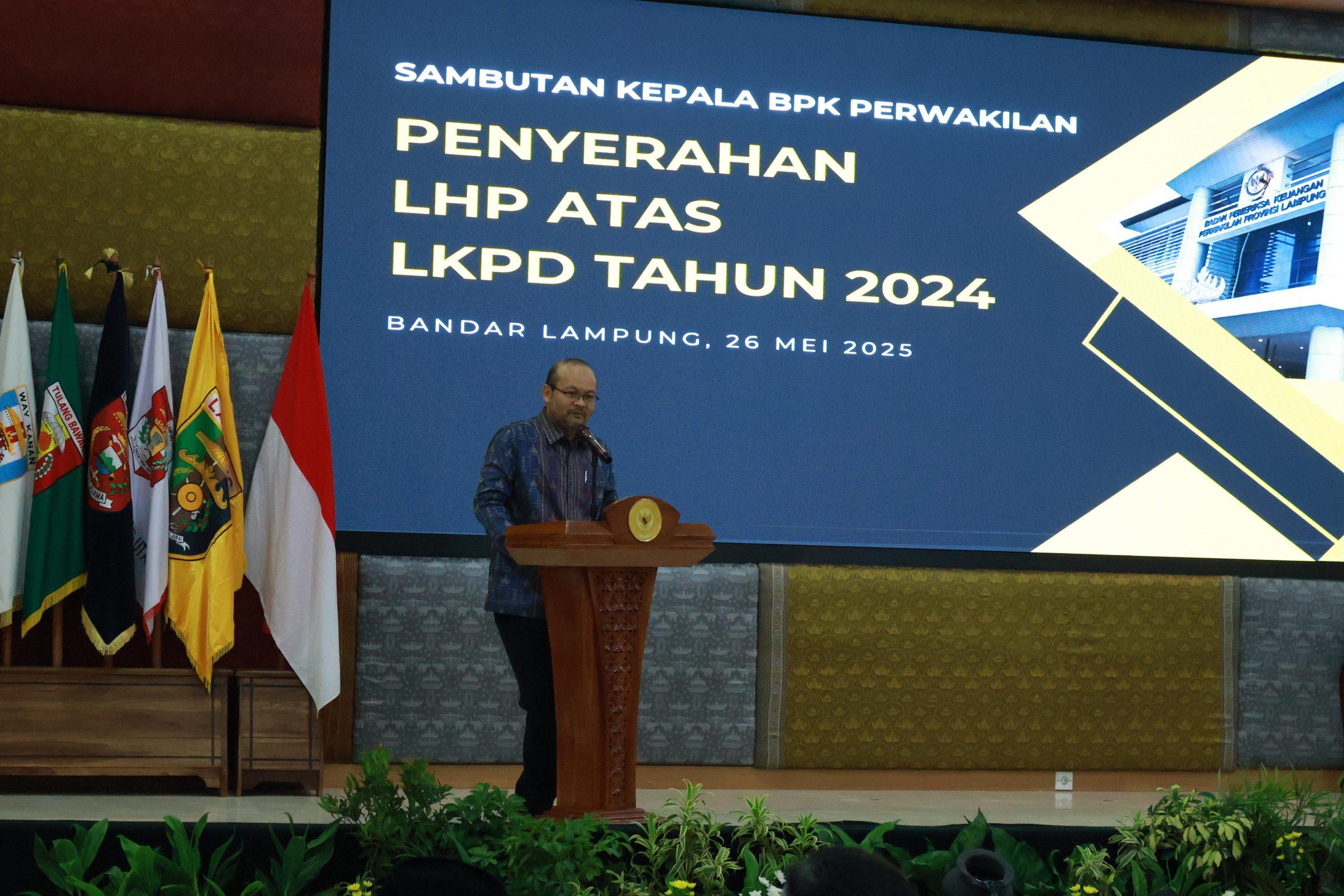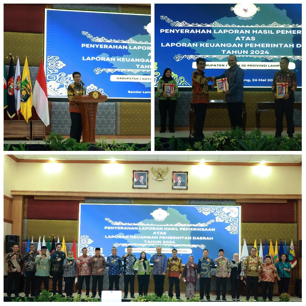 Penyerahan Laporan Hasil Pemeriksaan (LHP) atas LKPD Tahun Anggaran 2024 dilakukan oleh Kepala BPK RI Perwakilan Provinsi Lampung, Nugroho Heru Wibowo, S.E., M.Comm., CSFA, ACPA, CA, Ak., kepada Bupati Lampung Utara, Dr. Ir. H. Hamartoni Ahadis, M.Si., dalam acara resmi yang digelar di Aula Krakatau, Kantor BPK RI Perwakilan Provinsi Lampung, Bandar Lampung, Senin (26/5/2025).
