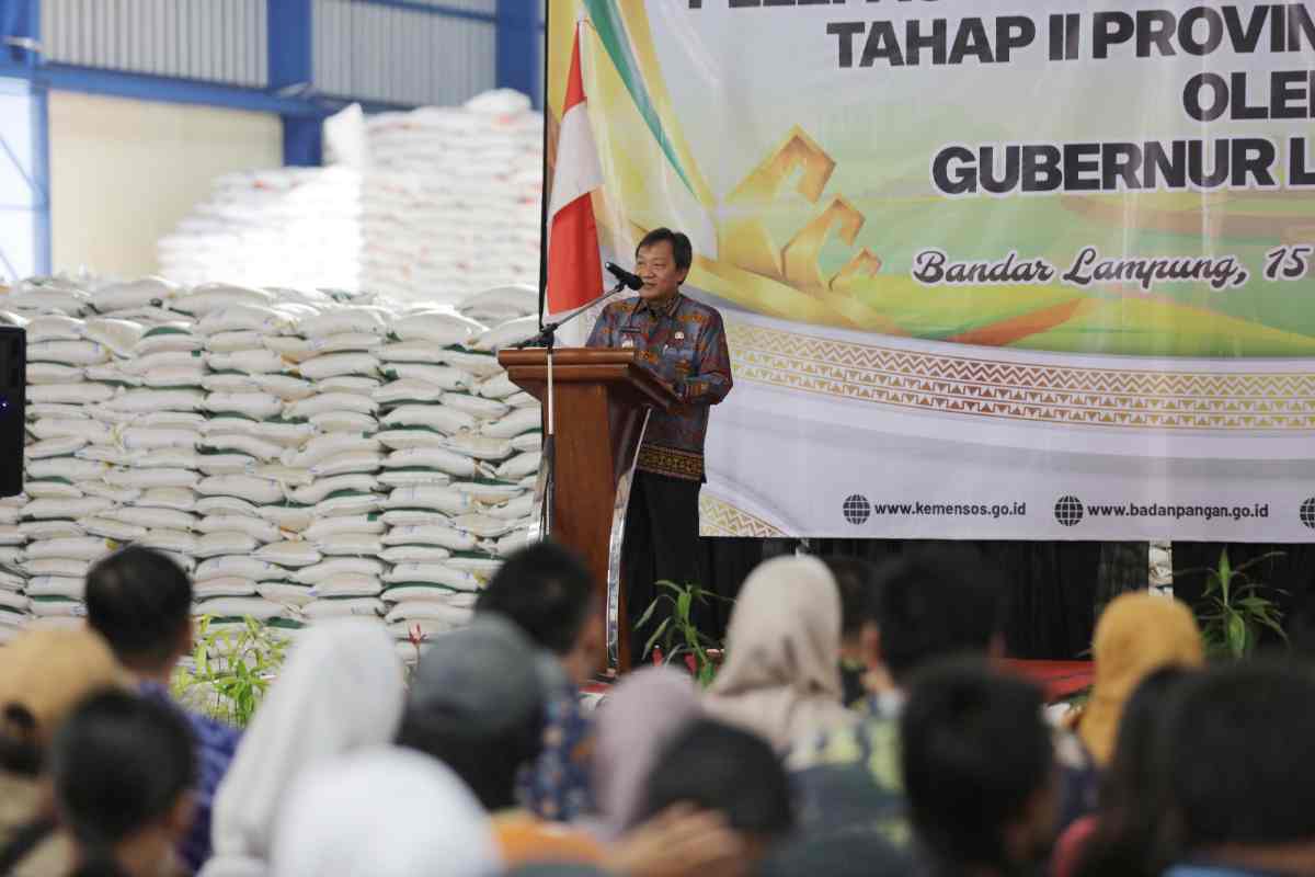 Harapan Gubernur itu disampaikan Asisten 2 Bidang Perekonomian dan Pembangunan Kusnardi saat melepas Bantuan Pangan Beras Tahap II Provinsi Lampung di Gudang Badan Urusan Logistik (Bulog), Campang Raya, Jumat (15/9/2023).