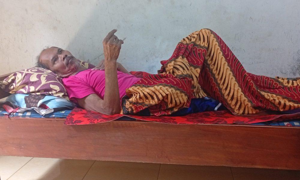 Iya hanya bisa terbaring lemas dan tidak banyak bergerak, ditemani istrinya yang bekerja serabutan serta anaknya yang terkena gangguan jiwa.
