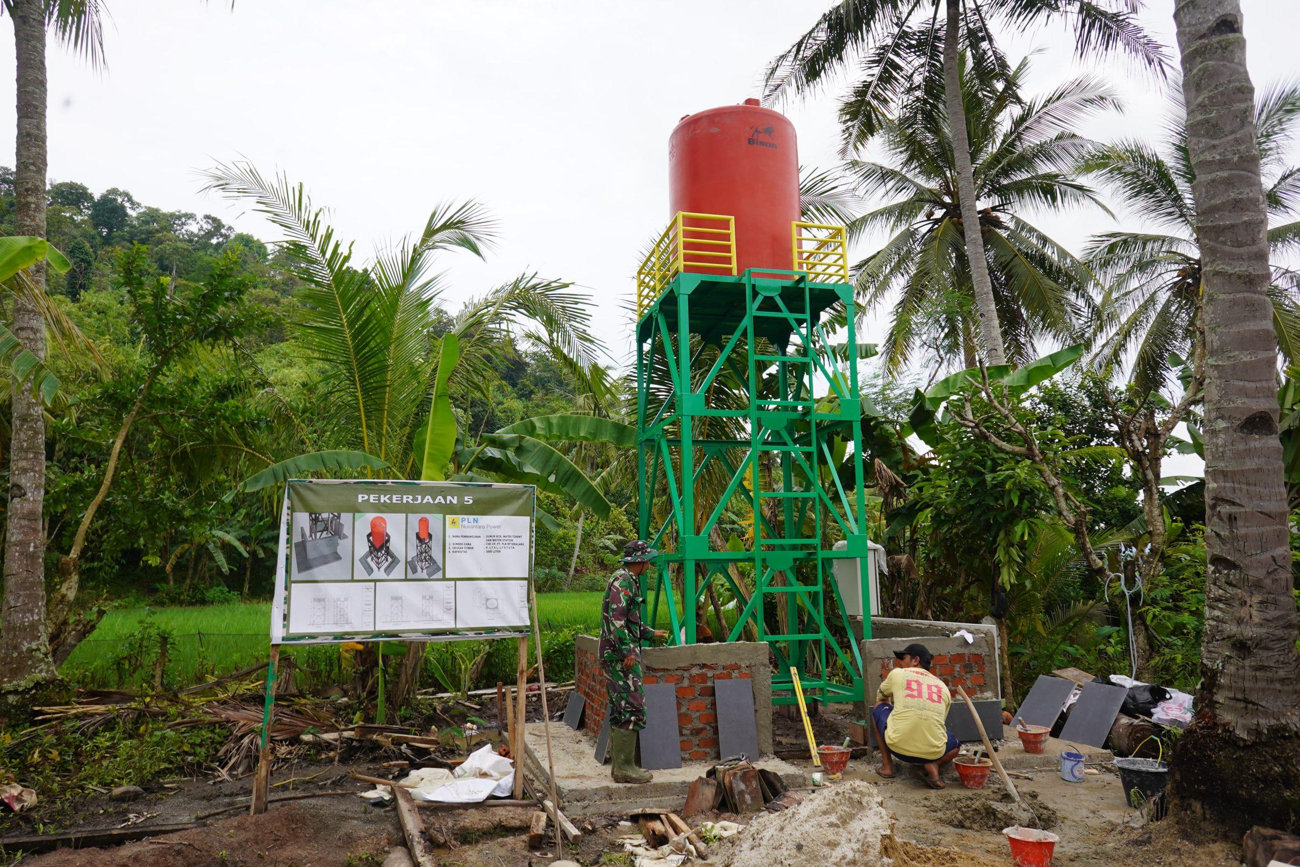 Pada tahap ini, Satgas TMMD melaksanakan pemasangan hand drill tower, sebuah instalasi penting yang menjulang sebagai penopang utama sistem penarikan air dari kedalaman tanah. Dengan penuh ketelitian, para anggota Satgas bekerja memastikan setiap bagian terpasang kuat dan siap berfungsi optimal.
