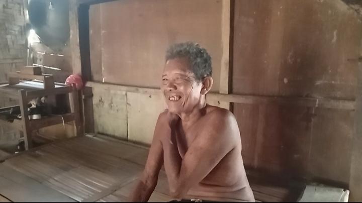 Di usia yang sudah memasuki 72 tahun lebih ia harus tinggal di rumah tidak layak huni bersama sang istri dan dua cucungnya yang hanya bekerja serabutan dengan penghasilan tidak menentu.