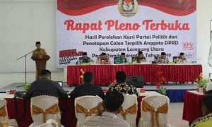 Lampung utara, www.Lampungmediaonline.com- Komisi Pemilihan Umum (KPU) Kotabumi Kabupaten Lampung utara gelar rapat pleno terbuka hasil perolehan kursi Parpol dan penetapan calon...