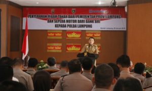 Bandarlampung.www.lampungmediaonline.com-Kapolda Lampung Irjen Pol Drs. Suntana, M.si. menerima hibah tanah dari pemerintahan Prov. Lampung dan sepeda motor dari Bank BRI kepada Polda...
