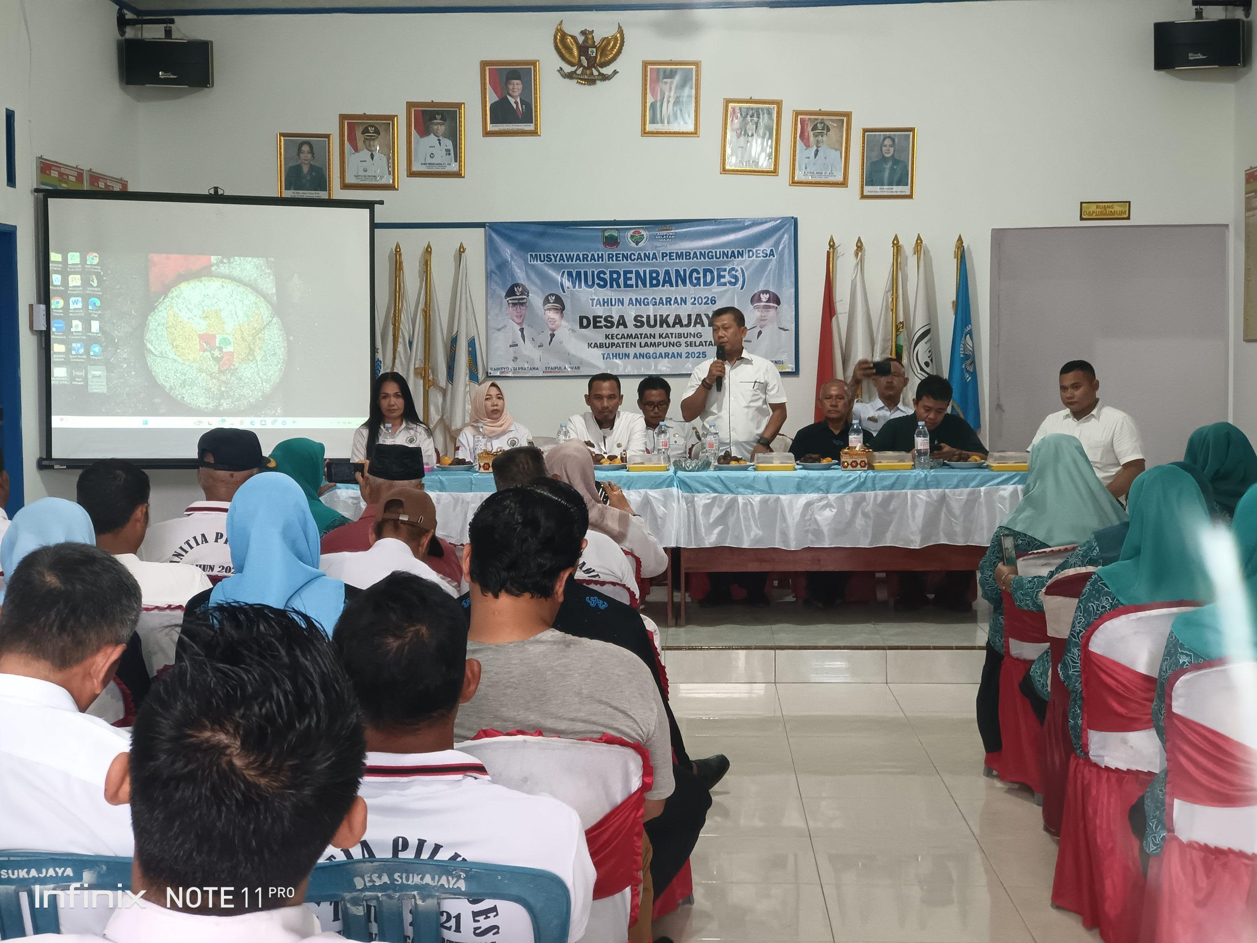 Lampung Selatan, www.lampungmediaonline com – Pemerintah Desa Sukajaya, Kecamatan Katibung, Kabupaten Lampung Selatan menggelar Musyawarah Rencana Pembangunan Desa (Musrenbangdes) tahun anggaran 2026 di aula kantor desa setempat, Rabu (15/10/2025).