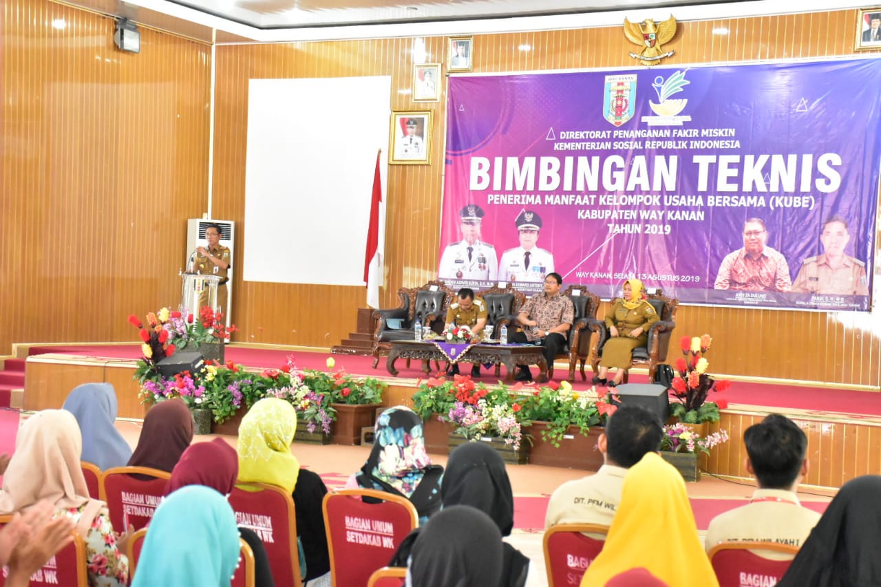 Pemerintah Kabupaten Way Kanan Buka Bimbingan Teknis Calon Penerima Bantuan Kelompok Usaha Bersama (KUBE) APBN di gedung serbaguna (GSG) Kabupaten Setempat,Selasa (13/8/ 2019).