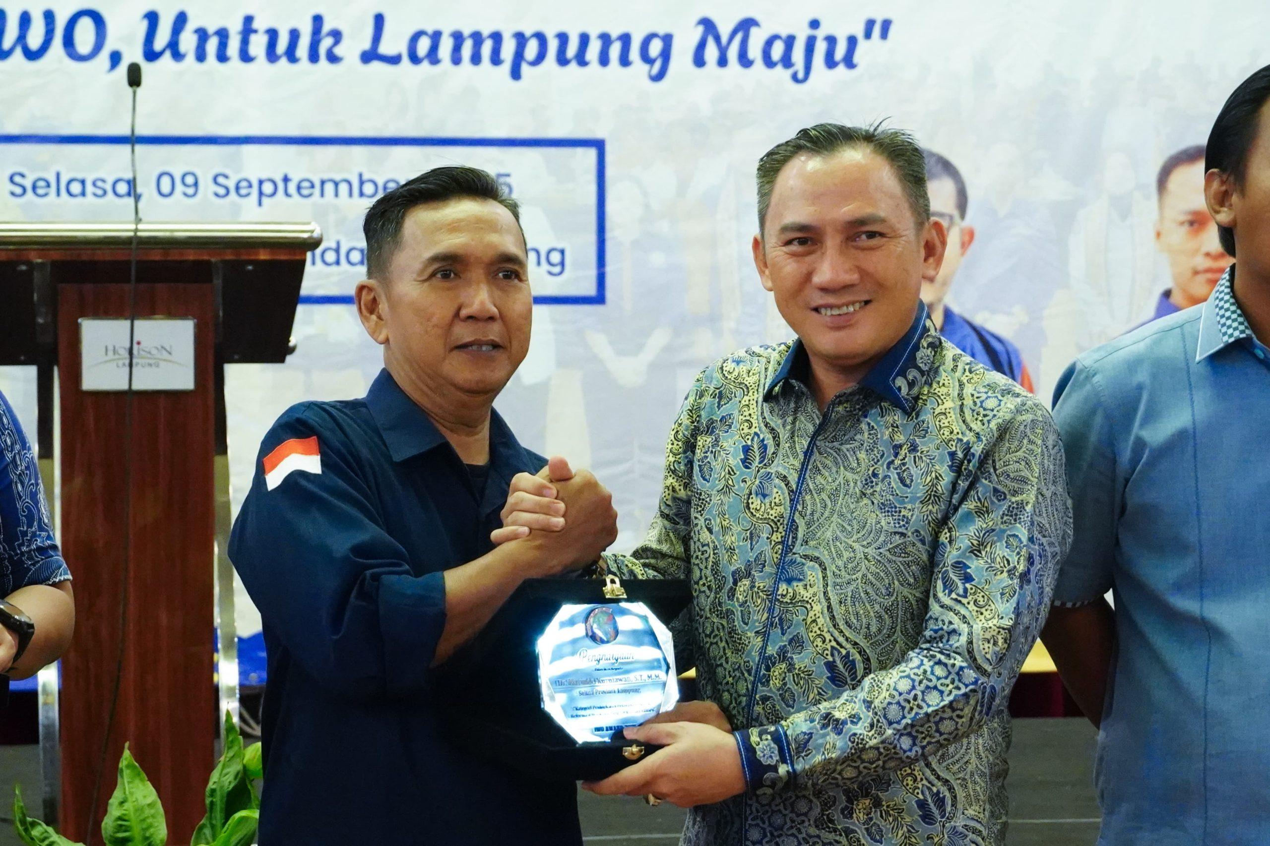Gubernur Rahmat Mirzani Djausal dalam IWO Award 2025 menerima Penghargaan dalam kategori Percepatan Pembangunan Daerah dan Kebijakan Kesejahteraan Masyarakat di Provinsi Lampung. Selain itu, Sekdaprov Marindo Kurniawan juga menerima Penghargaan dalam kategori Peningkatan Pelayanan Publik, Reformasi Birokrasi yang Efektif dan Efisien. (Kmf).