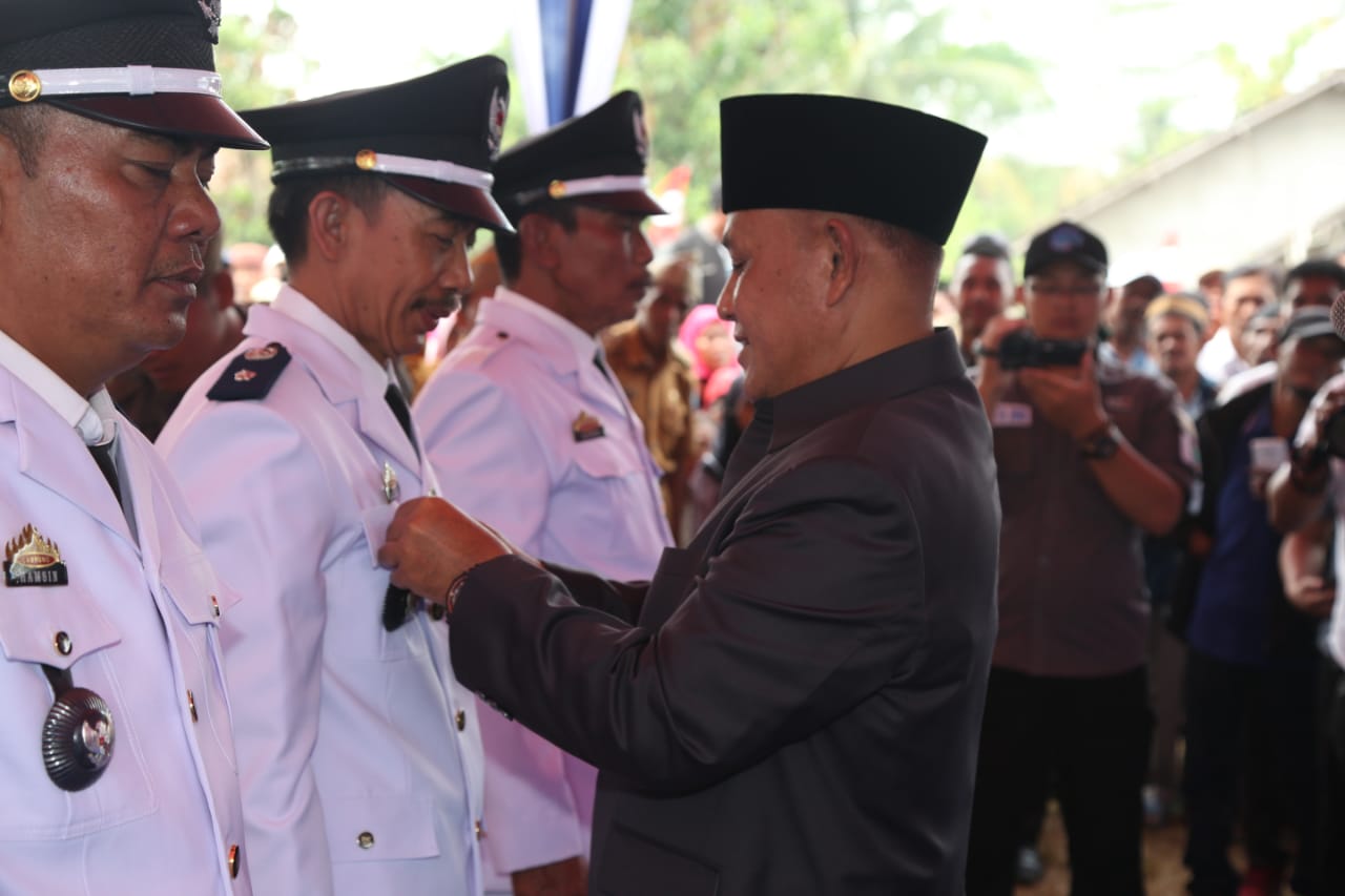 Lampung selatan. Www.lampungmediaonline.com – Plt. Bupati Lampung Selatan H. Nanang Ermanto lantik empat Kepala Desa Kecamatan Ketapang dilapangan Desa Karang Sari, Rabu (28/8/2019).