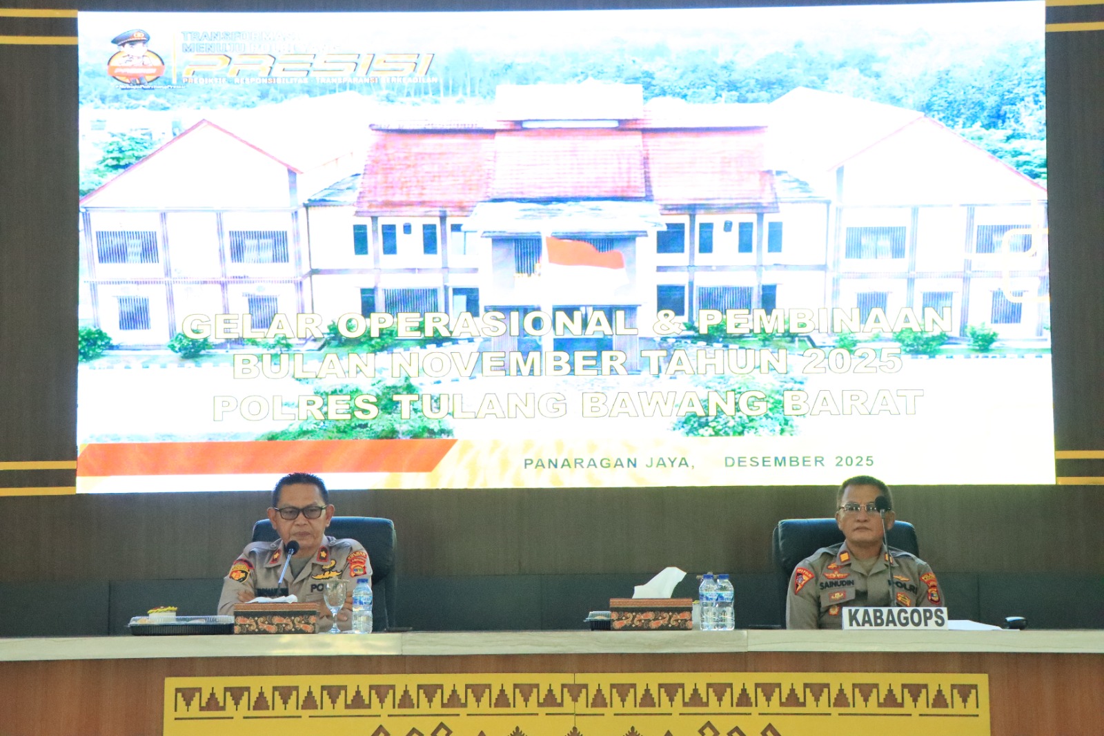 Kapolres Tubaba AKBP Sendi Antoni, S.I.K., M.I.K. melalui Kabag log Kompol Tarmansyah, S.E didampingi Kabag Ops Akp Sainudin Pimpin Langsung pelaksanaan Gelar Operasional (GO) Bulanan Dan Anev Situasi Kamtibmas, Kegiatan tersebut berlangsung di Aula Sarja Arya Racana Mapolres Tubaba, Kamis (04/12/2025) pagi.
