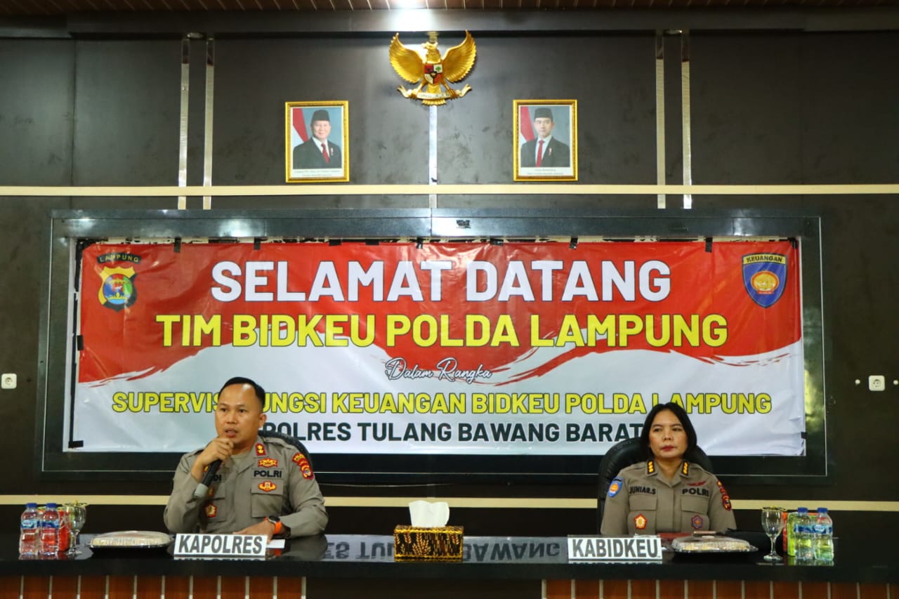 Polres Tubaba Polda Lampung menerima kunjungan Tim Supervisi Fungsi Keuangan TA 2025 dari Bidang Keuangan (Bidkeu) Polda Lampung, di Aula Atas Mapolres Tubaba, Selasa (19/8/2025) pagi.