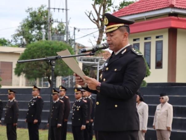 Polres Way Kanan menggelar upacara peringatan Hari Pahlawan Tahun 2025 di lapangan apel mako Polres setempat, Senin (10/11/2025).