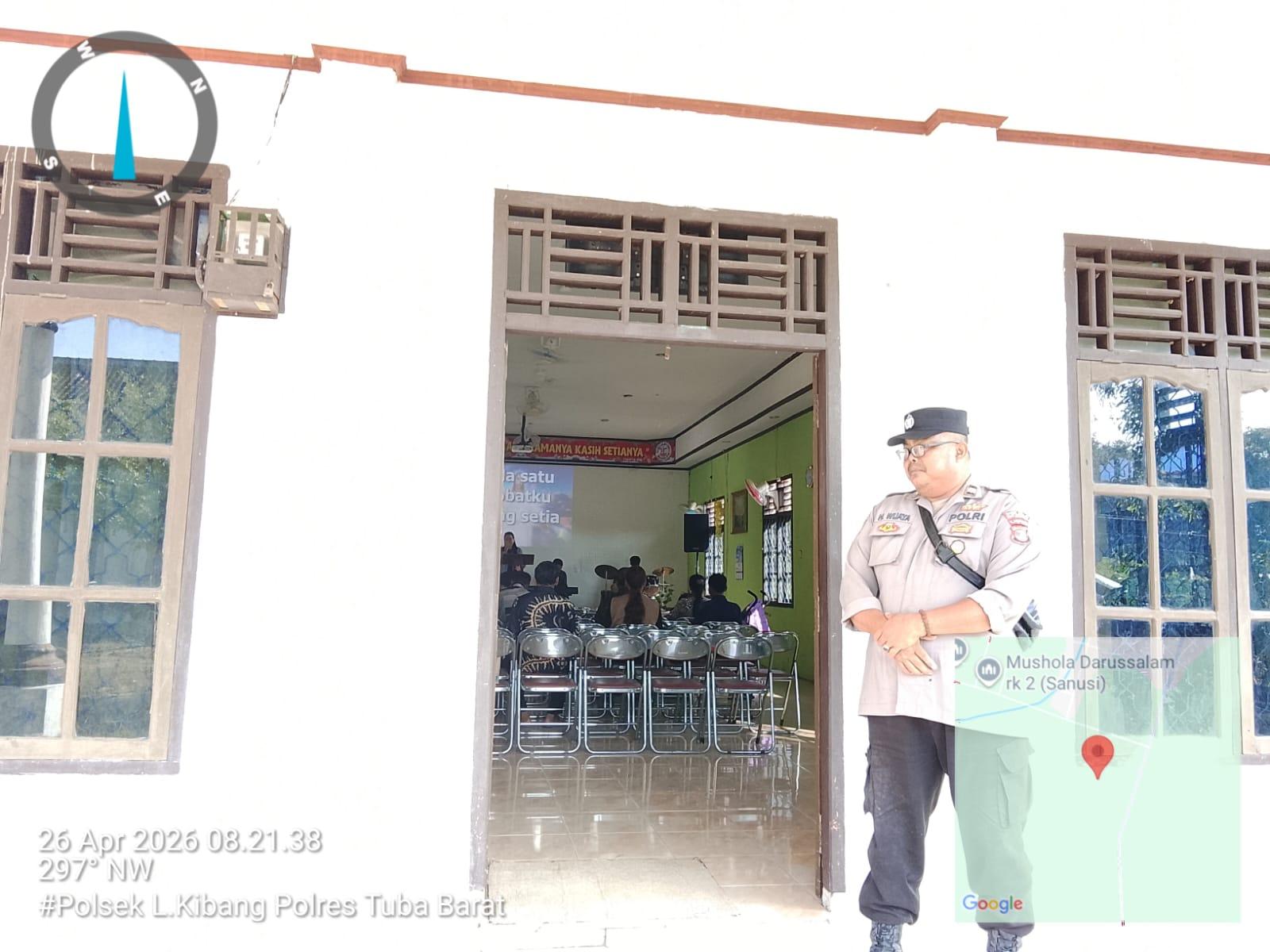 Personil Polsek Lambu Kibang Polres Tubaba, Polda Lampung melaksanakan kegiatan Pengamanan Ibadah Gereja Minggu Kasih di Gereja Bethel Indonesia Tiyuh Kibang Budi jaya Kec. Lambu Kibang Kab.Tulang Bawang Barat. Minggu (26/04/2026) Pagi