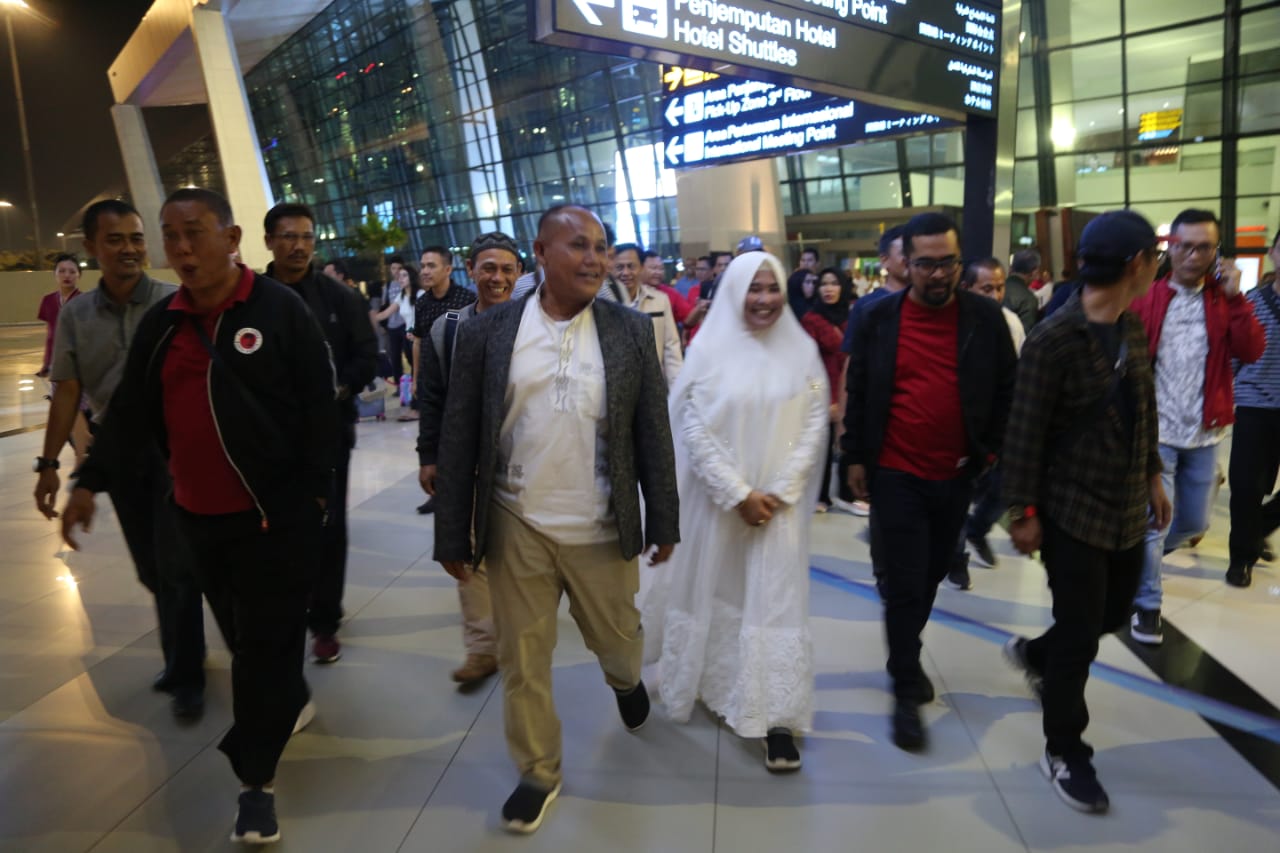 Nanang bersama istri tiba di tanah air melalui Terminal 3 Bandar Udara (Bandara) Internasional Soekarno-Hatta, Tangerang, Banten, sekitar pukul 22.20 WIB, Kamis (15/8/2019).