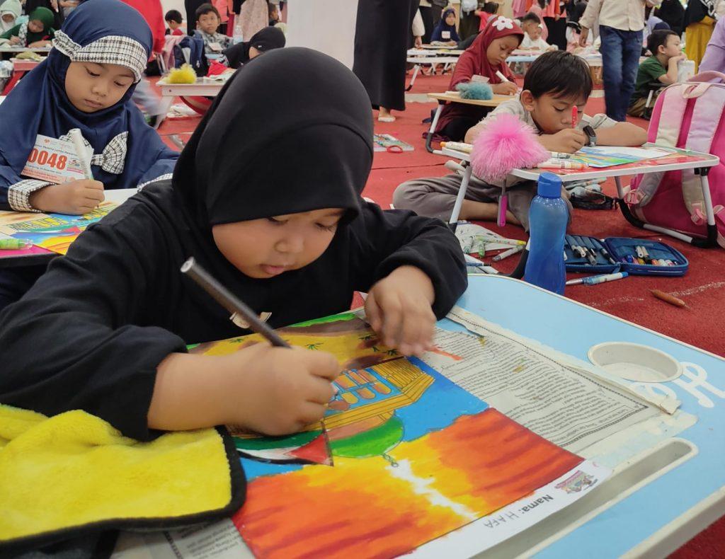 Lomba yang dibagi menjadi dua kategori usia, yaitu 4-6 tahun dan 7-10 tahun, berlangsung meriah dan penuh semangat. Para peserta tampak antusias memilih warna-warna cerah untuk menghidupkan gambar mereka. Mulai dari gambar Masjid Al-Aqsa yang megah hingga anak-anak Palestina, setiap karya mencerminkan kreativitas dan keunikan masing-masing peserta.
