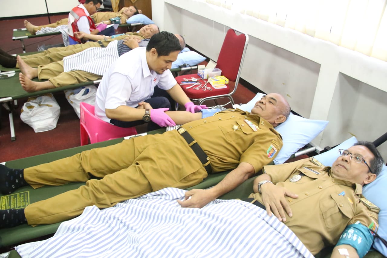 BANDARLAMPUNG LM —Ratusan ASN di Lingkungan Pemerintah Provinsi Lampung mengikuti bakti sosial donor darah. Kegiatan ini digelar dalam rangka memperingati Hari Ulang Tahun Kemerdekaan RI ke-74 di Ruang Sungkai Balai Keratun Kantor Gubernur Provinsi Lampung Selasa, (13/8/2019).