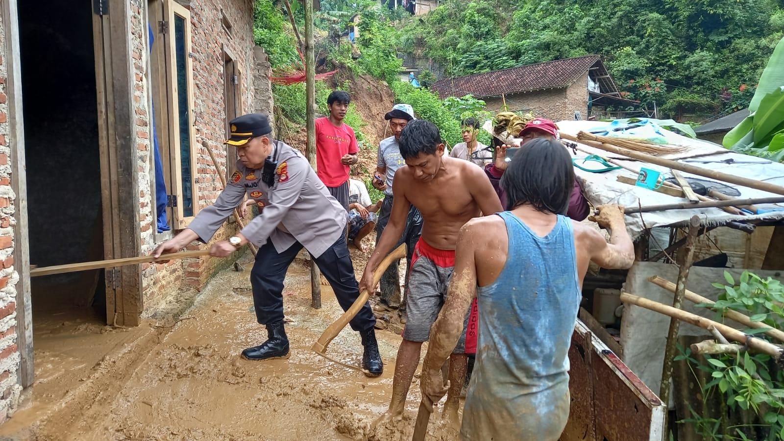Dipimpin langsung oleh Kapolsek Panjang Kompol M. Joni, SH, MH bersama Jajaran Polsek Panjang dan warga sekitar bahu membahu mengeluarkan tumpukan tanah dan lumpur yang masuk ke dalam rumah.