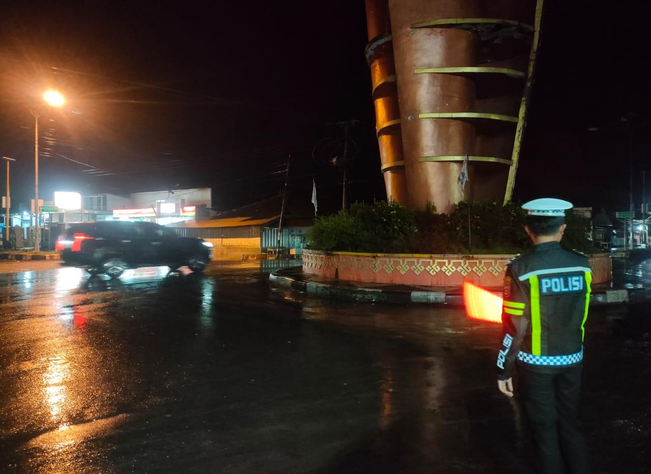 Dalam rangka memastikan keamanan, keselamatan, ketertiban, dan kelancaran lalu lintas (Kamsebtibcarlantas), Satuan Lalu Lintas (Sat Lantas) Polres Tulang Bawang Barat, Polda Lampung melaksanakan patroli malam hari di ruas jalan Tugu Payung Kel. Panaragan Jaya Kec.Tulang Bawang Tengah, Kab. Tulang Bawang Barat. Jumat (21/11/2025) malam