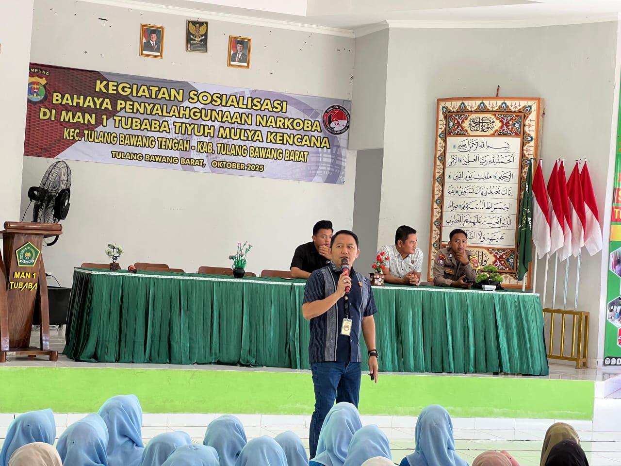Penyuluhan tentang Bahaya Penyalahgunaan Narkoba tersebut di laksanakan oleh Tim Direktorat Reserse Narkoba Polda Lampung di pimpin oleh Kasubagminops Ditresnarkoba Pembina Riski Pujianto, S.H., M.H. , turut hadir mendampingi tim dari Polres Tubaba Kasat Resnarkoba Polres Tubaba Akp Samsi Rizal, S.E.,M.H beserta Ps. Kaurmintu Bripka Agus Setiawan.