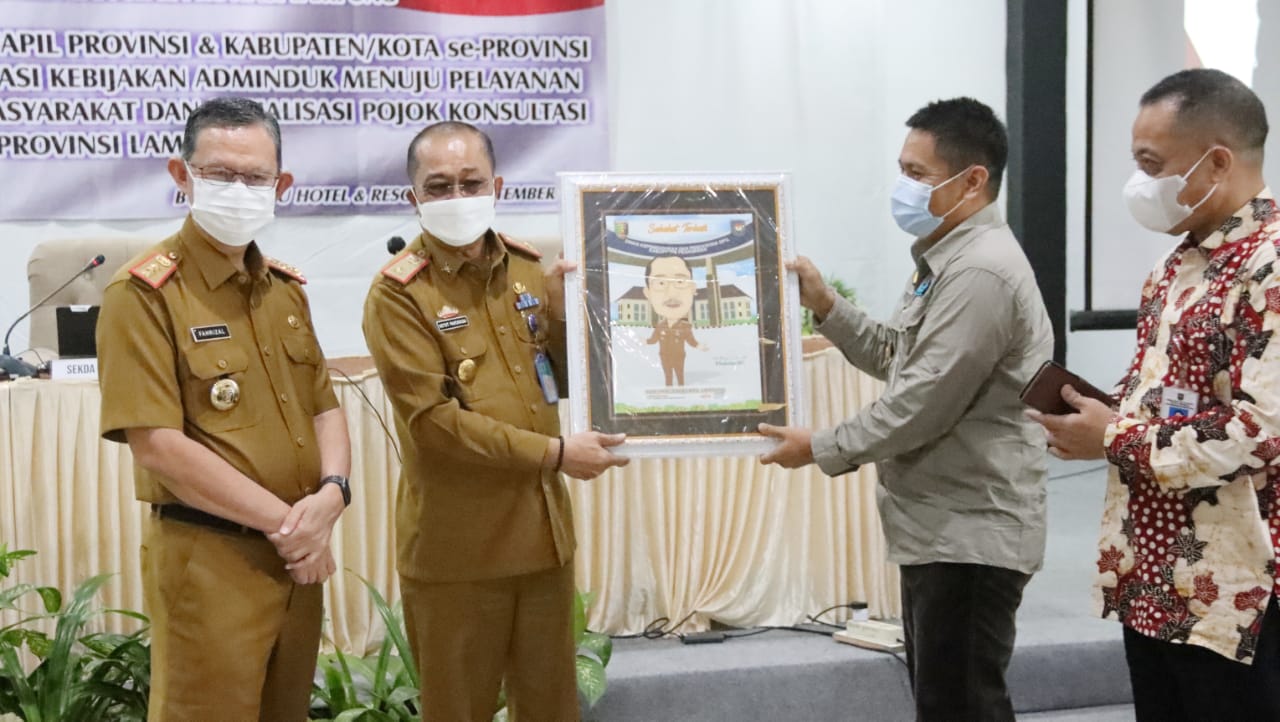 BANDAR LAMPUNG, www.lampungmediaonline.com Sekretaris Daerah Provinsi Lampung Fahrizal Darminto menjadi narasumber dalam rapat Forum Komunikasi Kadisdukcapil Provinsi dan Kabupaten/Kota se-Provinsi Lampung, di Hotel Bukit Randu, Senin (27/09/2021).