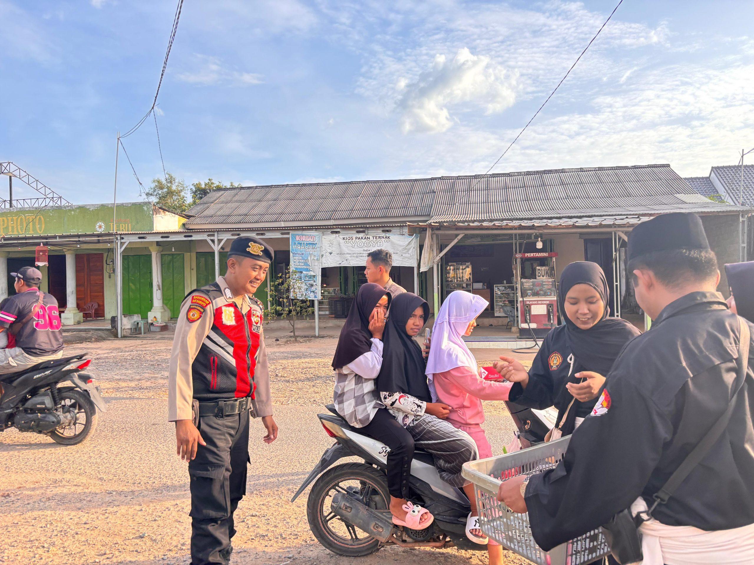 Kapolsek Lambu Kibang Iptu Kasiyono, S.E., M.H. beserta Personil Polsek Lambu Kibang di bulan suci ramadhan menggelar kegiatan sosial pemberian takjil kepada Masyarakat pengguna Jalan yang melintas di depan Mako Polsek Lambu Kibang, Jumat (28/02/2026) Sore
