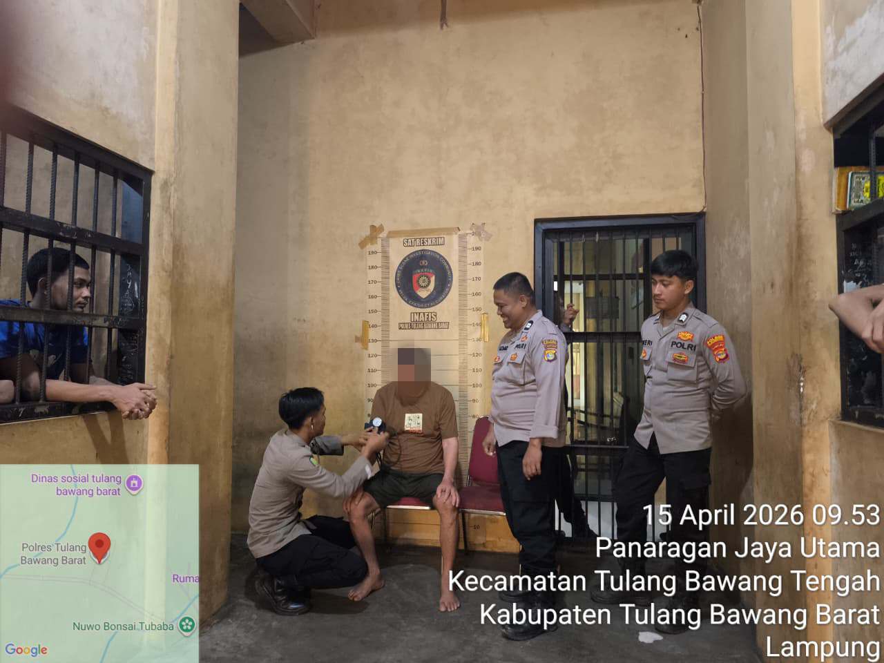 Seksi Kedokteran Kepolisian dan Kesehatan (Sie Dokkes) Polres Tulang Bawang Barat, Polda Lampung melaksanakan pengecekan dan pemeriksaan kesehatan para tahanan di rumah tahanan Mapolres Tubaba sekaligus Pemberian obat tahanan yang sakit, Rabu (15/04/2026) pagi