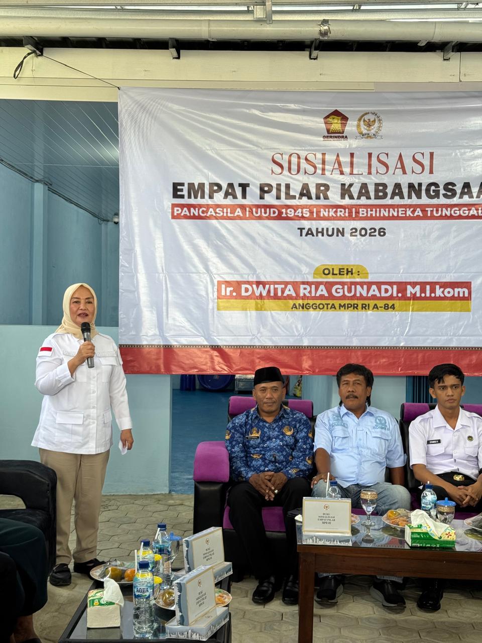 Lampung Tengah, www.lampungmediaonline.com – Anggota Badan Sosialisasi MPR RI, Ir. Dwita Ria Gunadi, menggelar kegiatan Sosialisasi 4 Pilar Kebangsaan pada Senin pagi, 16 Februari 2026 di Desa Sukanegara, Kecamatan Bangun Rejo, Kabupaten Lampung Tengah.