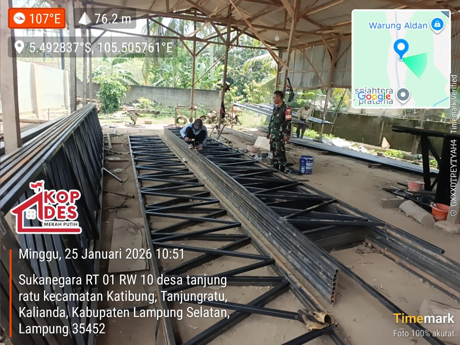 Lampung Selatan, www.lampungmediaonline.com Dalam upaya nyata mendukung pemberdayaan ekonomi masyarakat desa, Babinsa Koramil 421-10/Katibung, Serda Yulian Efran turun langsung ke lapangan untuk memastikan progres pembangunan Koperasi Desa Merah Putih, berjalan sesuai harapan. Kegiatan monitoring dan pengawalan tersebut dilaksanakan di desa tanjung ratu kecamatan Katibung Lampung Selatan, Kabupaten lampung Selatan, pada Selasa (25/01/2026), sebagai bentuk kepedulian TNI terhadap kesejahteraan rakyat.