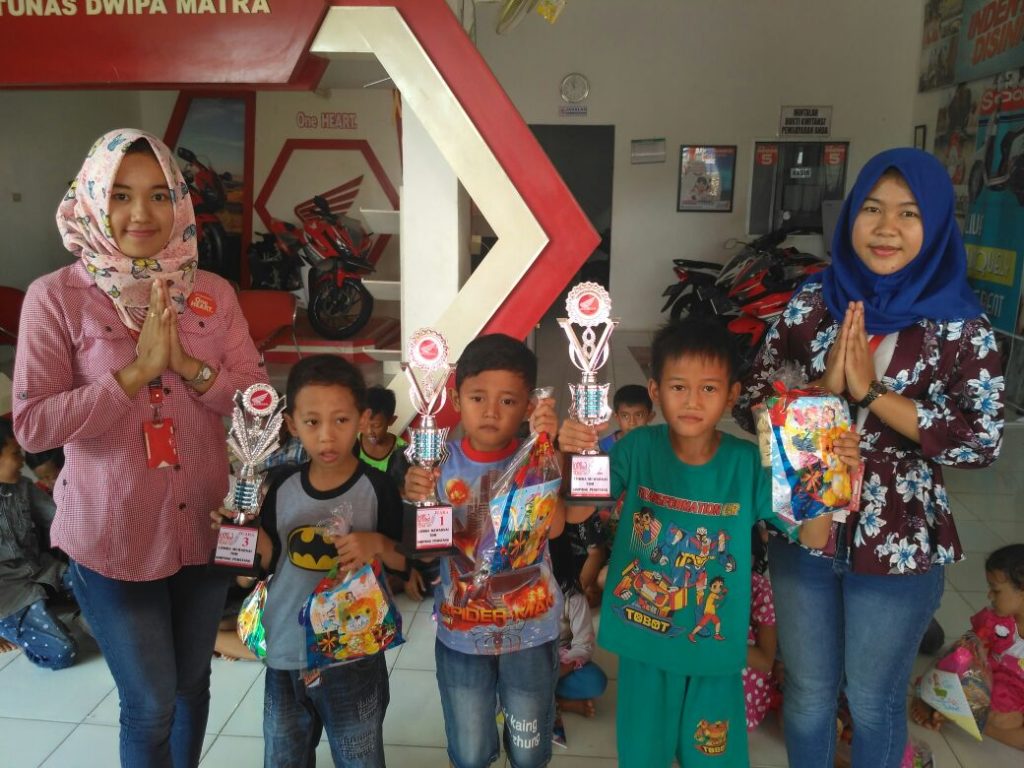 Kegiatan yang melibatkan TPA di Kecamatan Simpang Pematang kabupaten Mesuji ini yang di helat di lingkungan Dealer Honda Tunas Dwipa Matra, diikuti puluhan peserta lomba, anak-anak terlihat sangat antusias dan bersemangat mengikuti lomba ini.