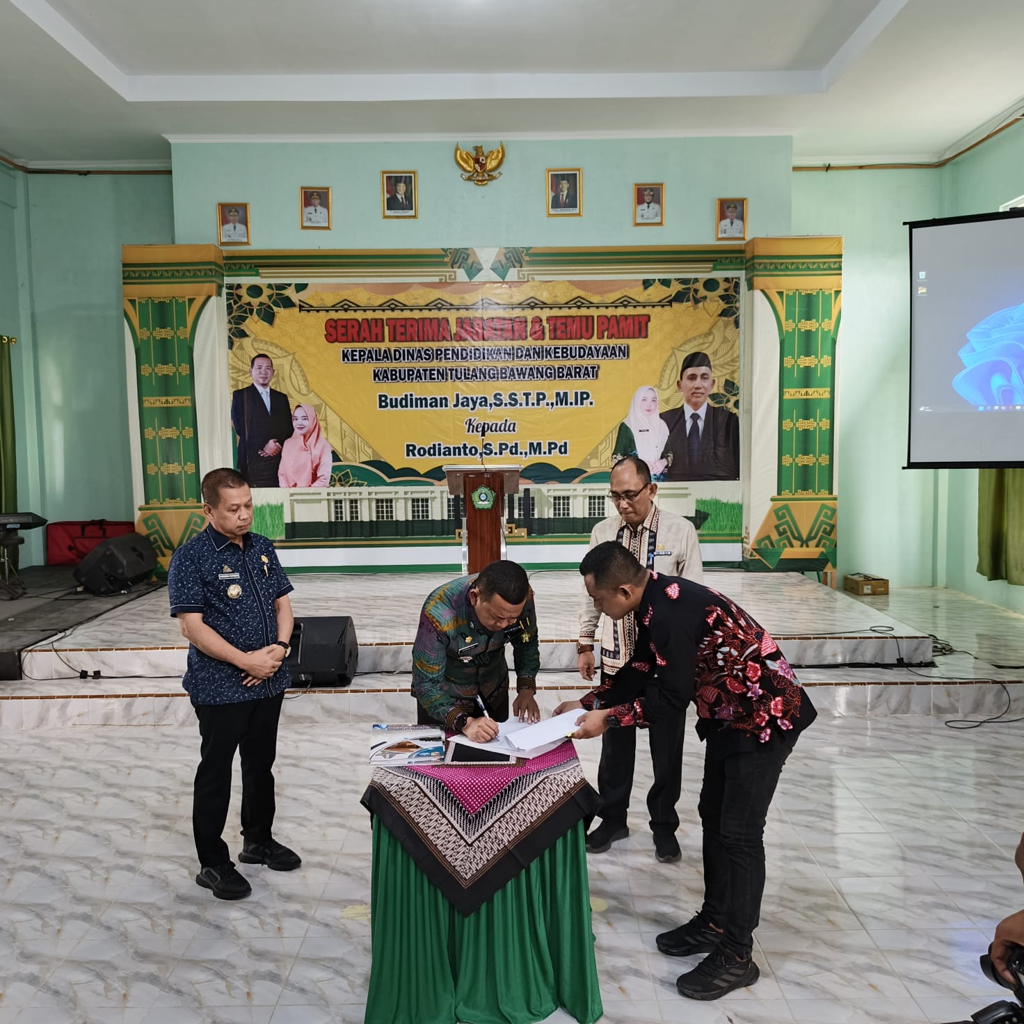 Suasana penuh kehangatan mewarnai acara serah terima jabatan dan temu pamit Kepala Dinas Pendidikan dan Kebudayaan (Disdikbud) Kabupaten Tulang Bawang Barat (Tubaba) dari Budiman Jaya, S.S.T.P., M.IP. kepada Rodianto, S.Pd., M.Pd..