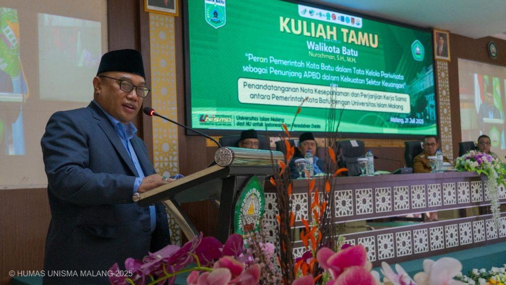 Kesepakatan ini ditandai dengan penandatanganan Nota Kesepahaman (MoU) yang berlangsung di Ruang Seminar KH. Wahab Hasbullah, Gedung Utsman Bin Affan Unisma, pada Senin (21/7/2025). Acara ini dihadiri langsung oleh Wali Kota Batu, H. Nurochman, serta Rektor Unisma, Prof. Drs. H. Junaidi, M.Pd., Ph.D.